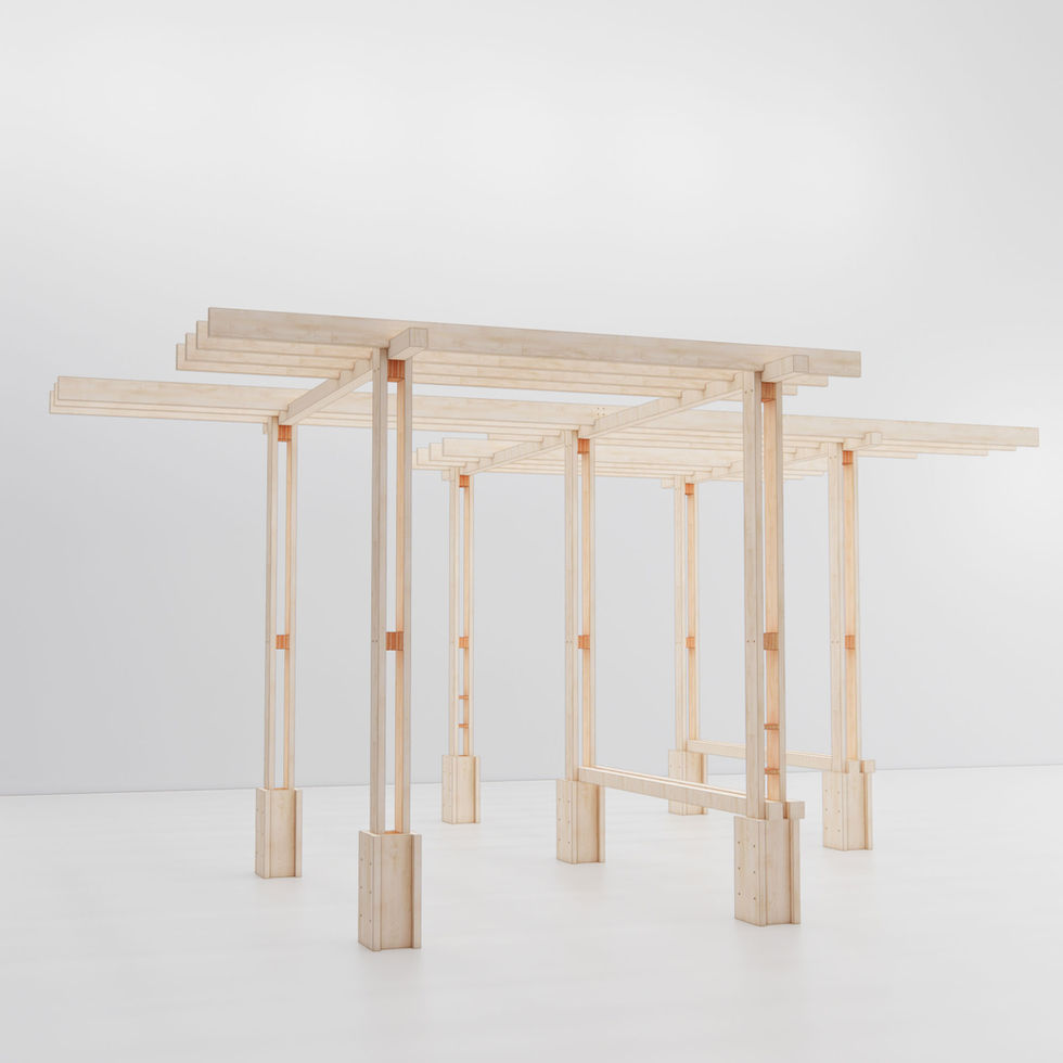 한국의 정자, 누각을 닮은 #파빌리온 은 원목 각재가 가로, 세로로 만나 공간을 만드는 구조물입니다. 사방에서 접근이 가능한 열린 구조이며, #모듈형 으로 공간 크기에 맞게 늘릴 수 있는 확장성을 가지고 있습니다.